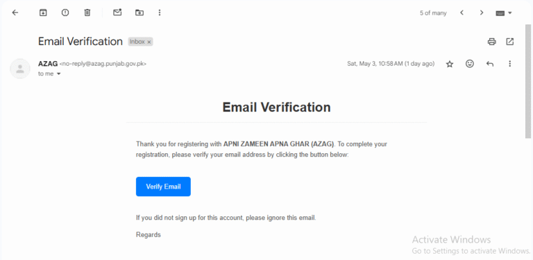 At this stage, you will receive an email that you will have to verify. To complete the registration, email verification is required. This can be done through your mobile phone. You will go to your mailbox, click on the verify email button, and your email will be verified.