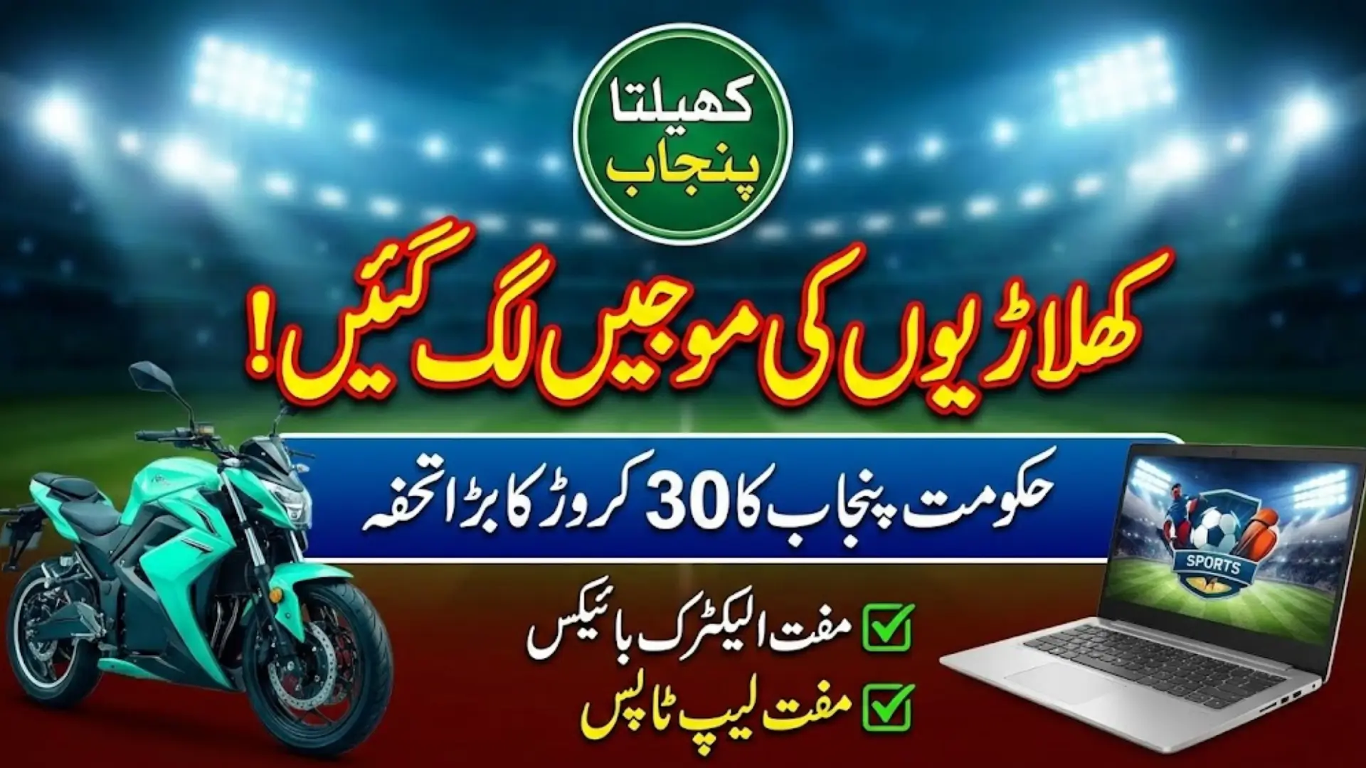 Continue Reading Khelta Punjab Players to Get Electric Bikes and Laptops Under Rs 300 Million Plan