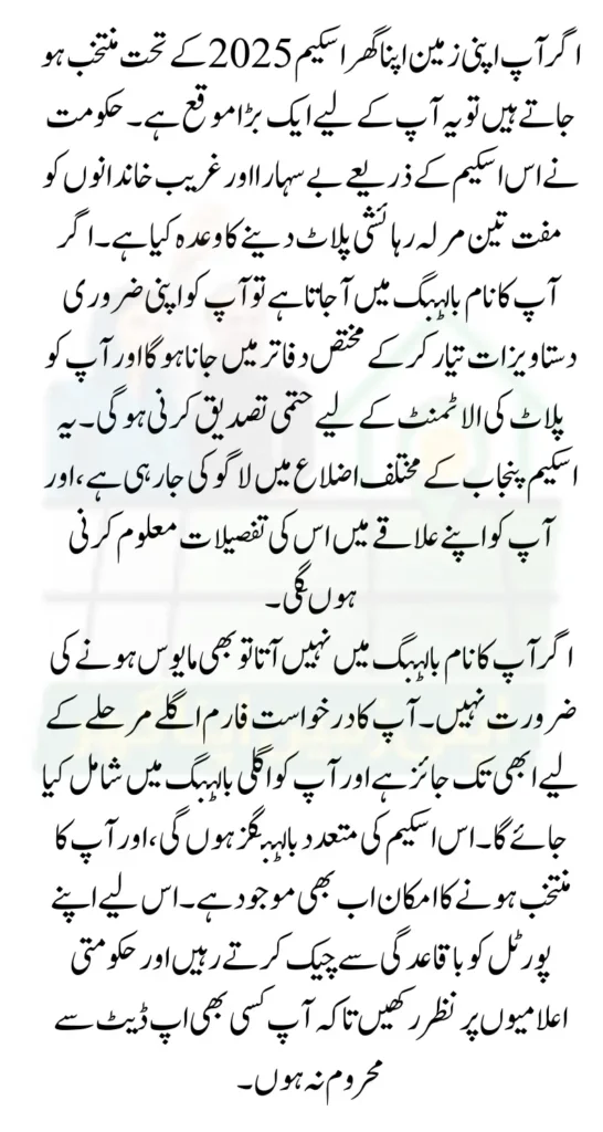 If your name is not listed in the results, don’t be disheartened. You are still part of the Apni Zameen Apna Ghar Scheme, and your application will remain valid for future balloting rounds. The government plans to conduct multiple phases of the balloting process, so you’ll have another chance in the future.