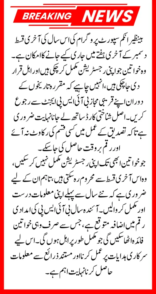 Women who have not completed their registration before the end of this year should understand that they will not receive this final installment. BISP has made it clear that incomplete or pending registrations are excluded from the current Qist cycle.