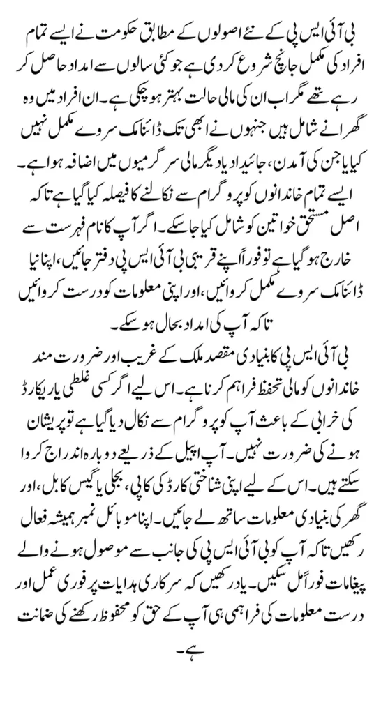 BISP 2025 List of Beneficiaries to Be Removed has introduced new eligibility rules for 2025 to ensure that financial aid reaches only the truly deserving families. This new verification process is part of the government’s effort to improve transparency and fairness. Every household registered under the program is being reassessed through the Dynamic Survey, where income level, family size, and financial activities are closely monitored. Those who no longer meet the criteria will be removed to make room for new applicants who are in real need.