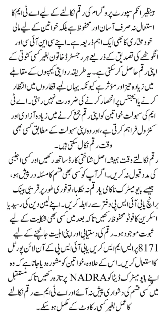 The BISP 8171 ATM withdrawal system is the most reliable way for beneficiaries to access their funds in 2025. By following simple steps, using the CNIC-based option, and performing biometric verification carefully, any eligible woman can withdraw her payment safely and without deductions.