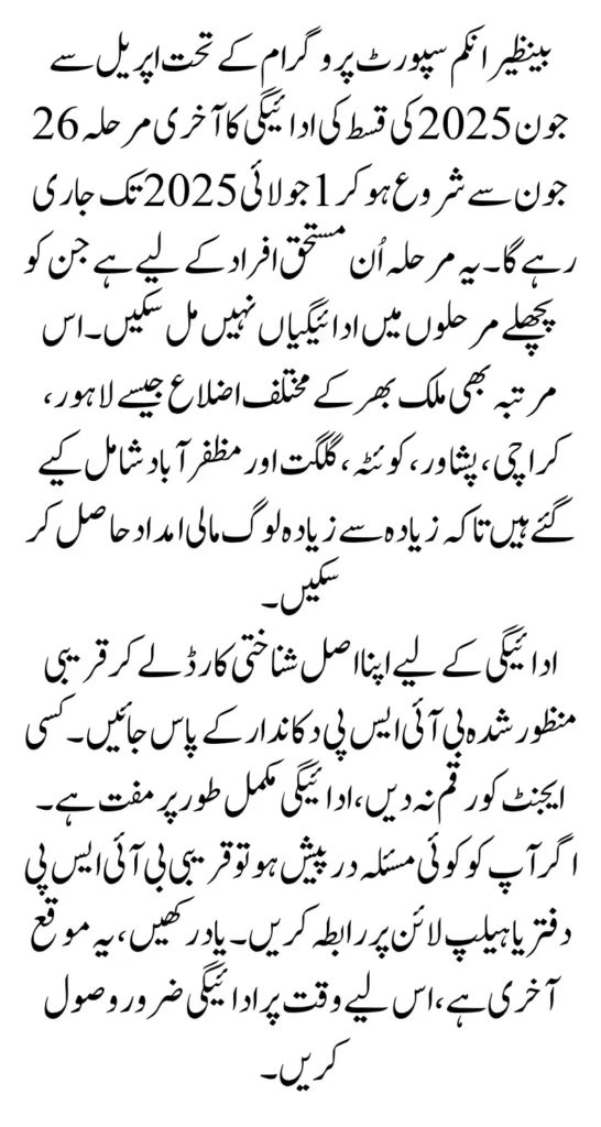 This phase is specifically designed for individuals who missed the payment in earlier rounds due to any reason. If your CNIC is valid and your name exists in the BISP beneficiary list, you do not need to worry. Just visit the authorized payment center in your area during the announced dates. This is likely the final opportunity for this quarter, and delays beyond July 1 may cause you to miss the payment cycle.