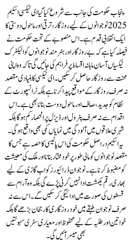 Those who meet the eligibility requirements should prepare their documents in advance and apply promptly once registration opens. By participating in this program, drivers not only secure a means of livelihood but also become part of Punjab’s journey toward a cleaner, greener, and smarter future.