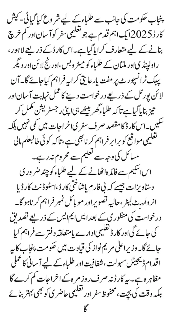 This card is a step toward an inclusive and educated Punjab where no student is left behind due to transportation costs.