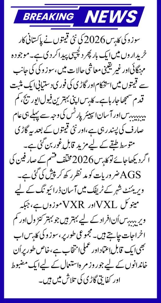 The Pakistani automobile market has remained under pressure due to inflation, fluctuating exchange rates, and reduced purchasing power. In such conditions, any price correction or stabilization immediately impacts buyer sentiment. The updated Cultus prices indicate that Suzuki is trying to retain its strong presence in the hatchback segment.